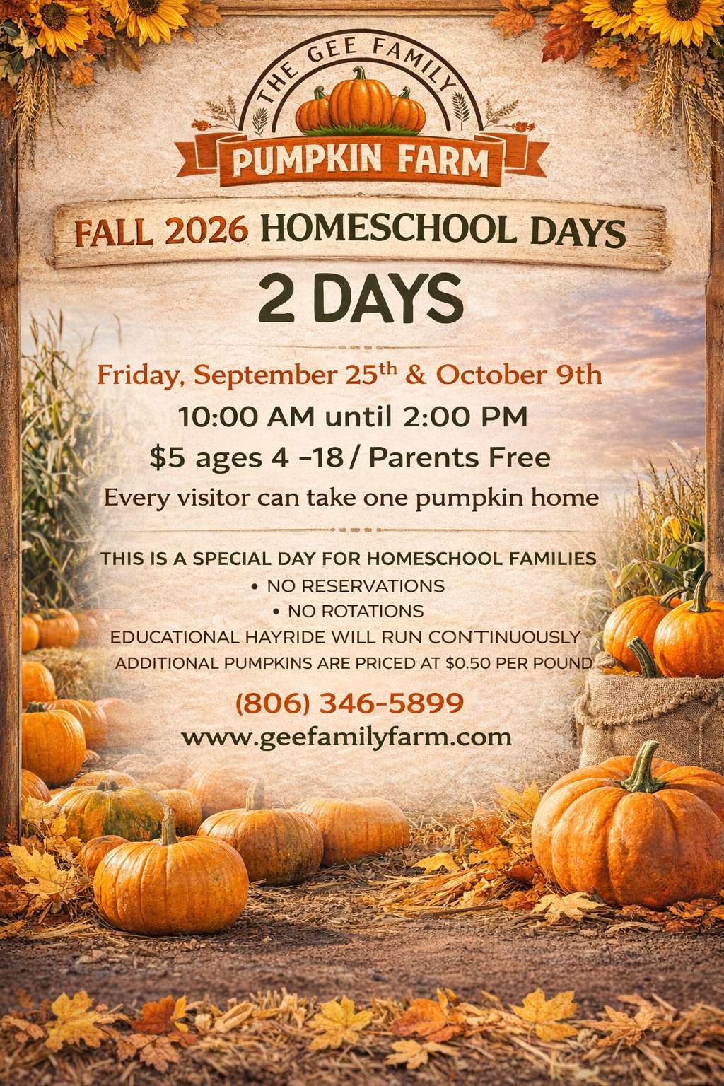 - Pumpkin Patch *Pumpkins are 0.50/Ib